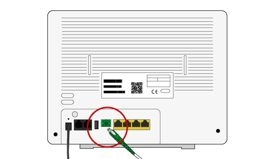 3. Desconecta el cable de fibra antiguo (cable más fino y delicado suele ser de color verde) de tu router actual y conéctalo a tu nuevo router directamente.