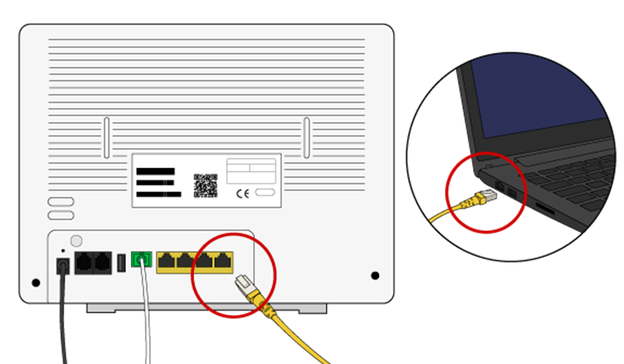 5. En caso de que quieras conectar un dispositivo (PC o TV) directamente al router utiliza el cable de red ethernet (amarillo).