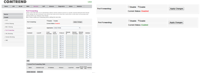 Goiko Services menura sartuko gara. Horren barruan, Firewall azpimenuan klik egingo dugu. Eta horren barruan, Port Forwarding sakatuko dugu.